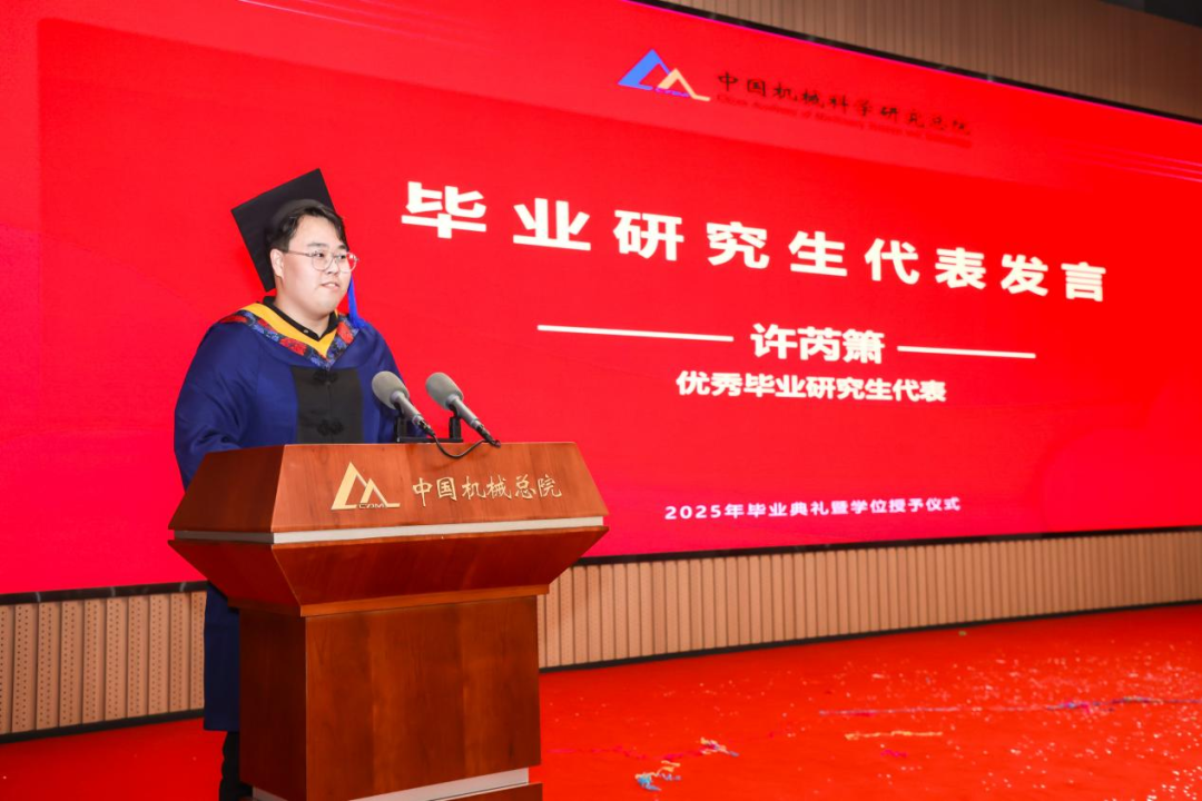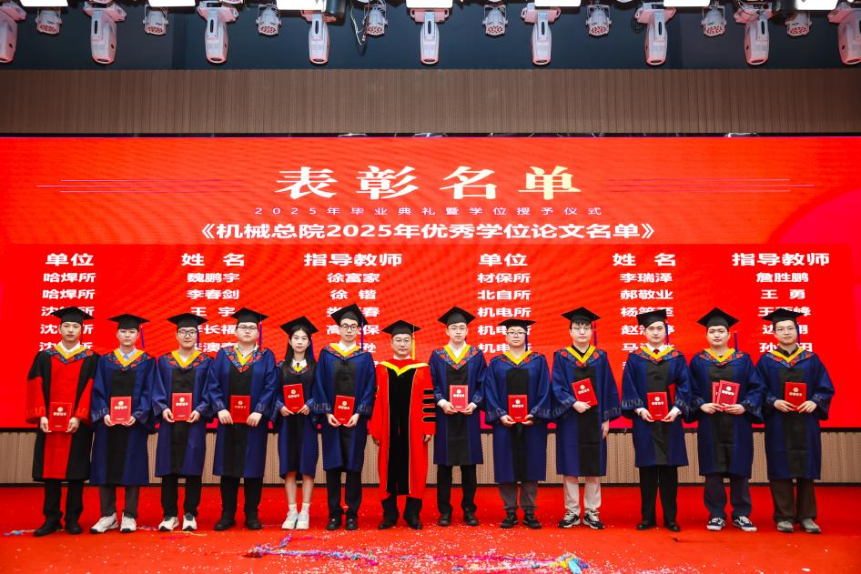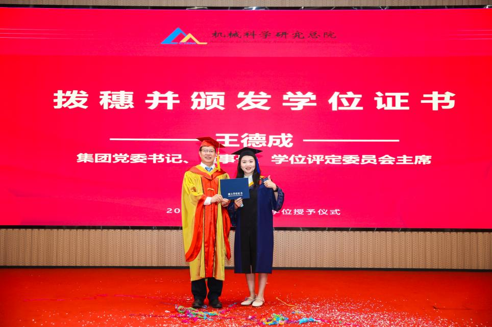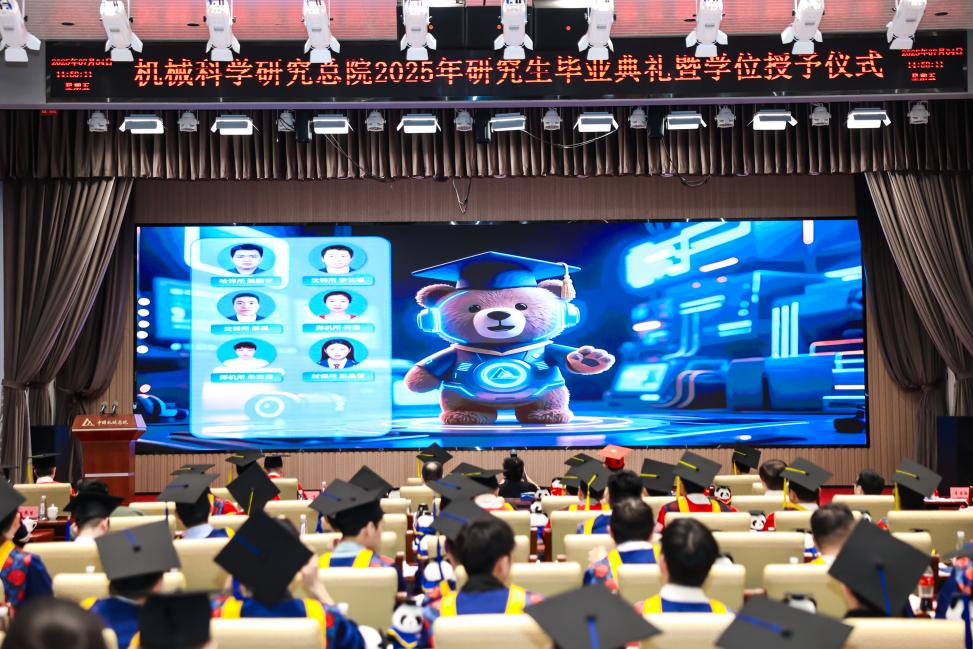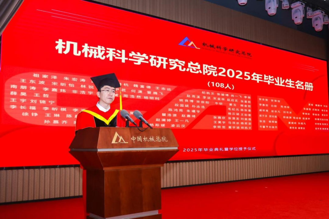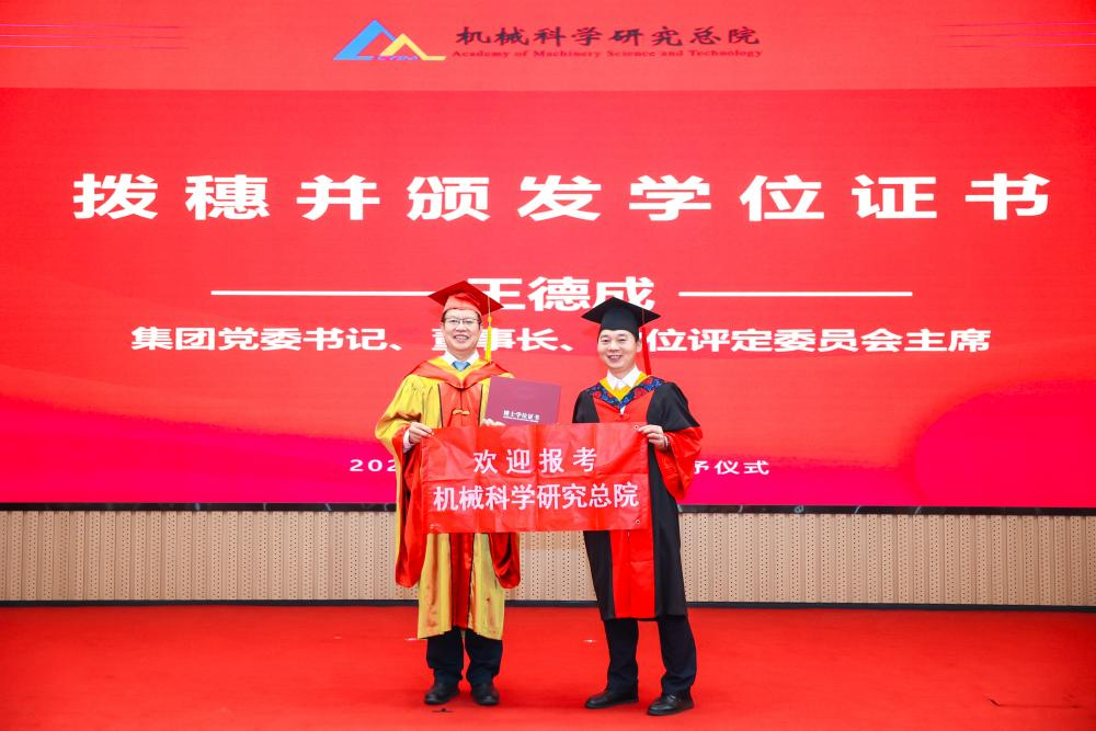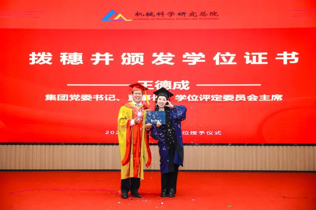 李愛國宣讀了《機(jī)械科學(xué)研究總院2025屆畢業(yè)生學(xué)位授予決定》,王德成為每位畢業(yè)生撥穗正冠并頒發(fā)學(xué)位證書。