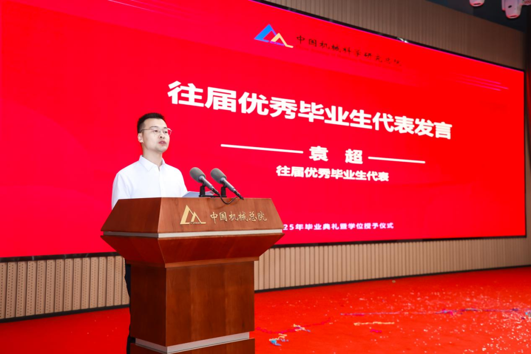 往屆優(yōu)秀畢業(yè)生代表袁超分享留院工作以來的科研經(jīng)歷與成長,鼓勵(lì)學(xué)弟學(xué)妹們“以‘敢為人先’為刃,在工業(yè)母機(jī)、工業(yè)軟件的賽道上破浪前行;以‘開拓創(chuàng)新’為炬,為中國制造業(yè)的高質(zhì)量發(fā)展點(diǎn)燃燎原星火。”