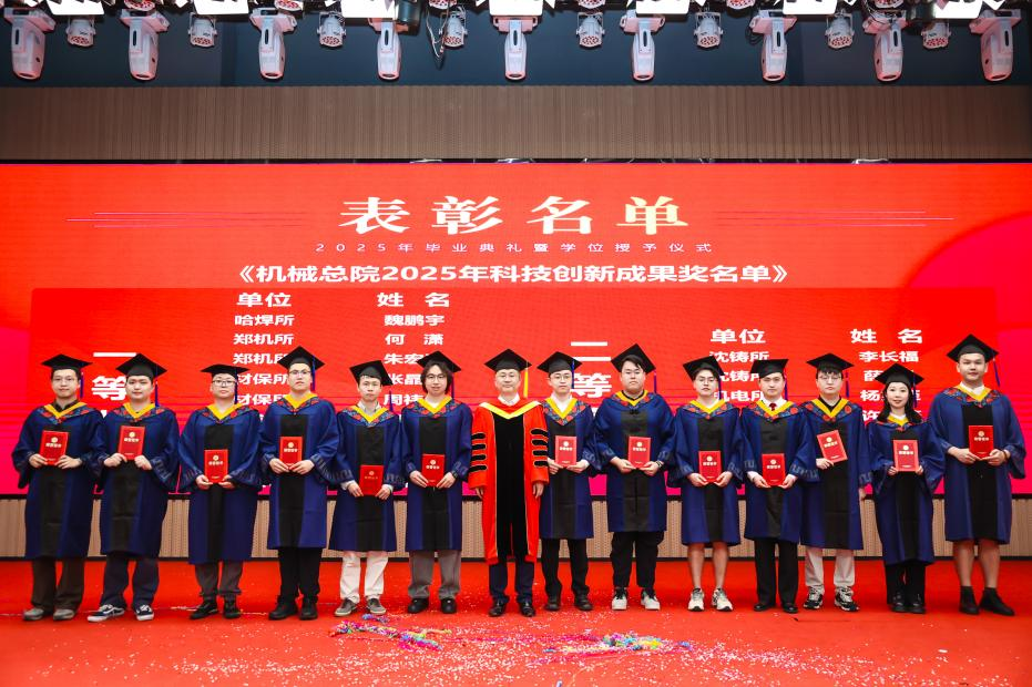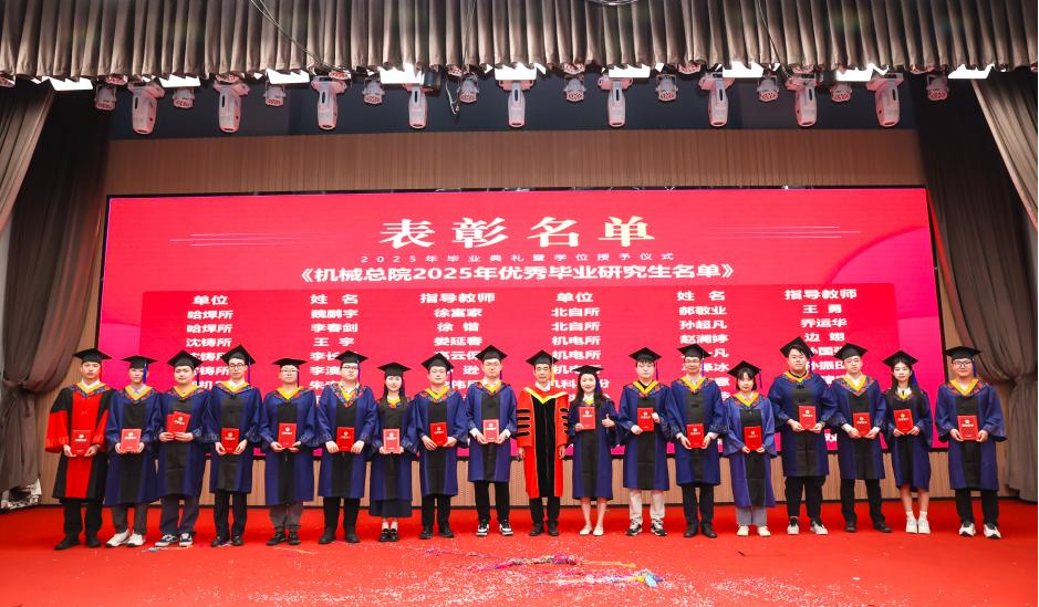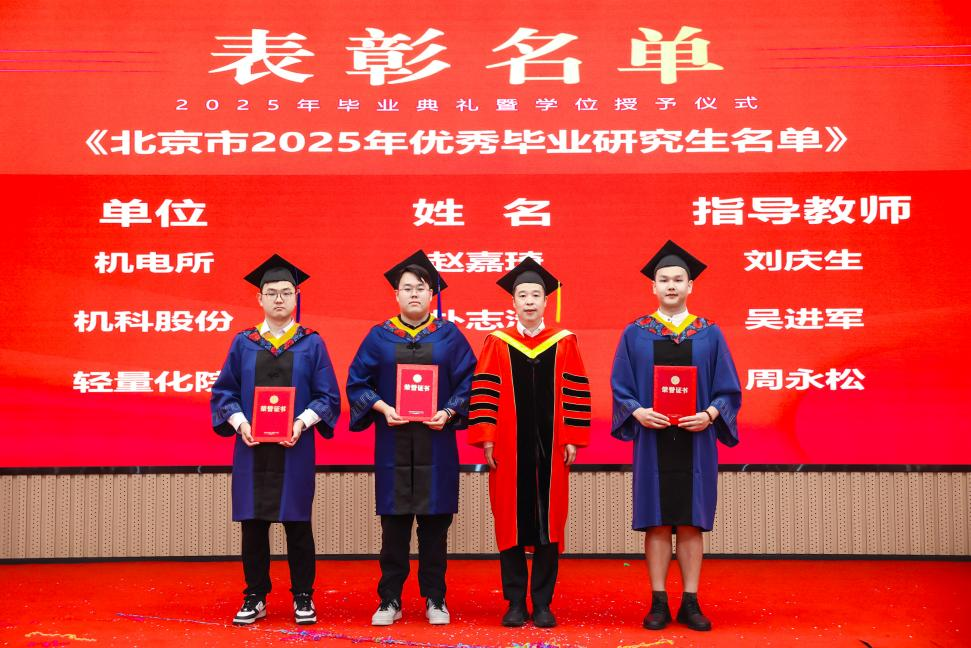 研究生院傾力打造的智慧課程虛擬AI助教“科小研同學(xué)”作為典禮第二主持人登上舞臺(tái),現(xiàn)場(chǎng)宣讀了2025年北京市優(yōu)秀畢業(yè)研究生、機(jī)械總院優(yōu)秀畢業(yè)研究生、優(yōu)秀學(xué)位論文、科技創(chuàng)新成果獎(jiǎng)獲得者名單,孟祥宇、李玉鑫、王宇、姜超分別向獲獎(jiǎng)同學(xué)們頒發(fā)榮譽(yù)證書。