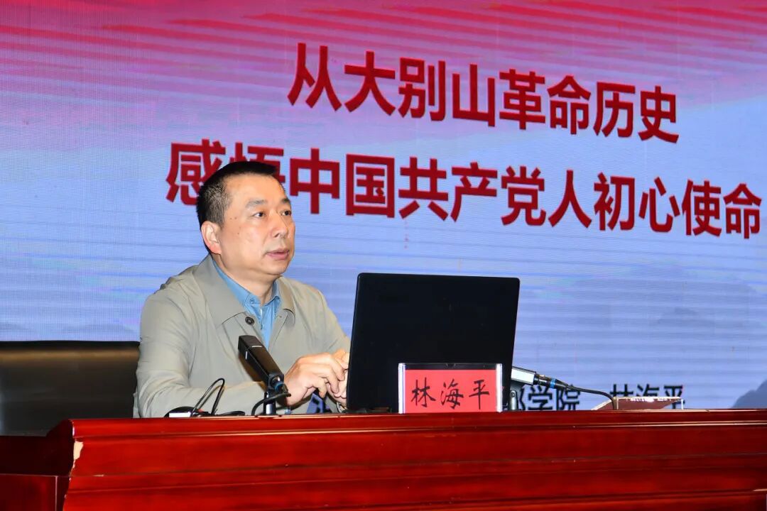 河南省省委黨校教授周遠方、河南大別山干部學院林海平副教授分別講授《重讀歷史文獻 踐行“三個務必”》《從大別山革命歷史感悟共產黨人的初心使命》課程。